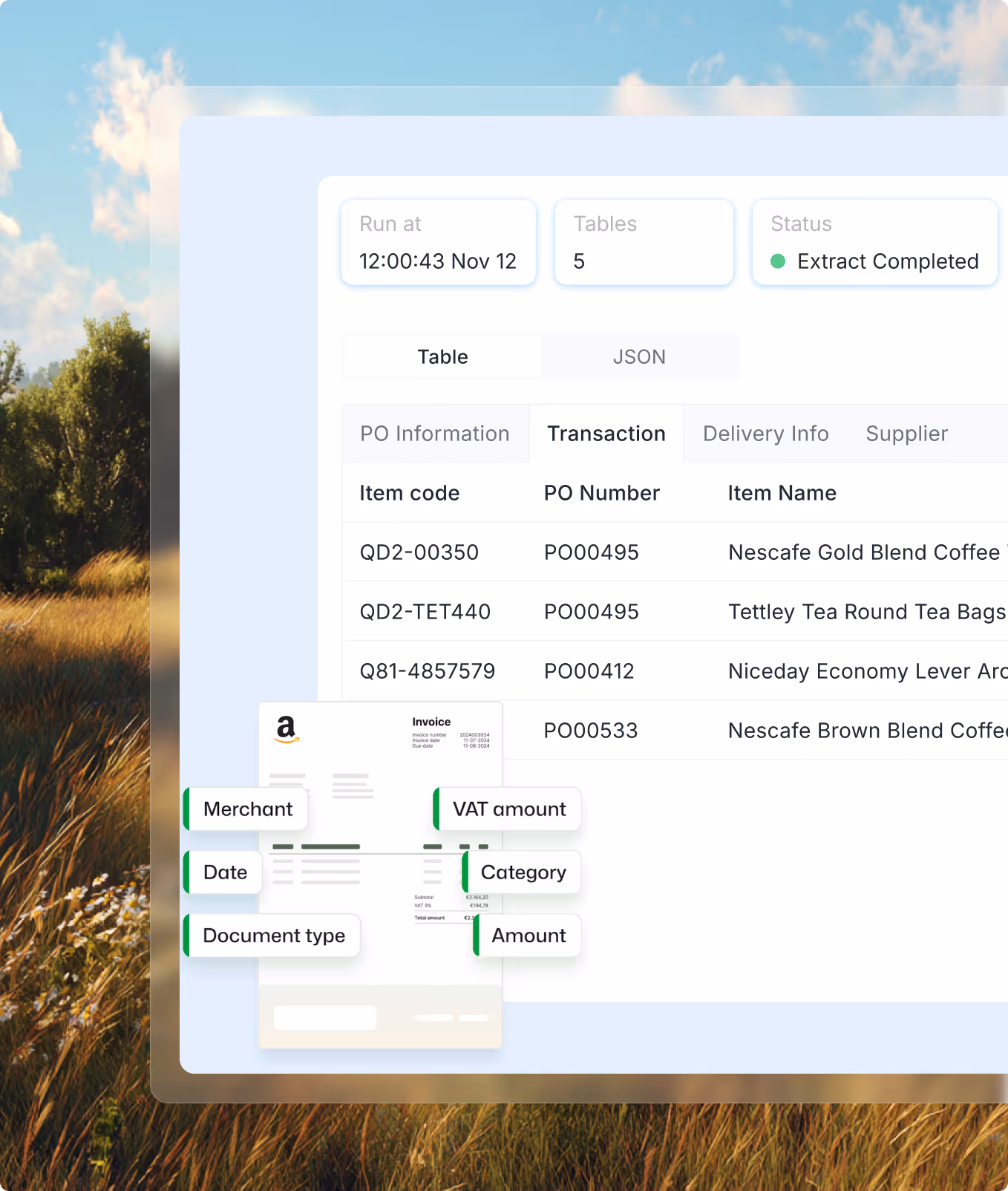 Extract data from PDFs, scans, tables, and mixed layouts, even when formats constantly change.